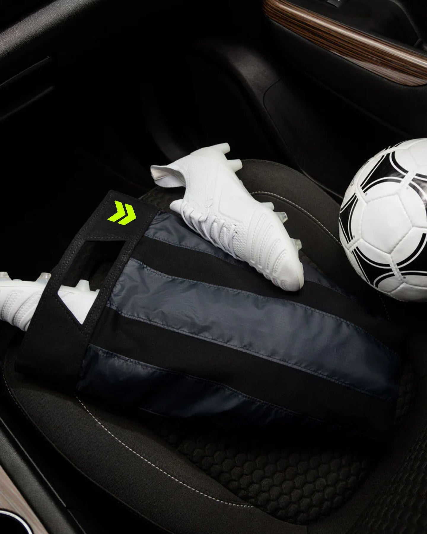 La bolsa ZenBag utiliza nuestro sistema patentado de 3 capas, probado en laboratorio, para bloquear y contener el mal olor. Una micromalla transpirable absorbe el sudor de tus tacos y lo transporta a la segunda capa, donde una malla recubierta de plata pura al 99,9 % libera iones que eliminan las bacterias, los hongos y los virus que causan el mal olor. Una última capa de carbón activado de grado militar atrapa la humedad y el olor restantes, permitiendo que solo escape aire limpio y fresco.