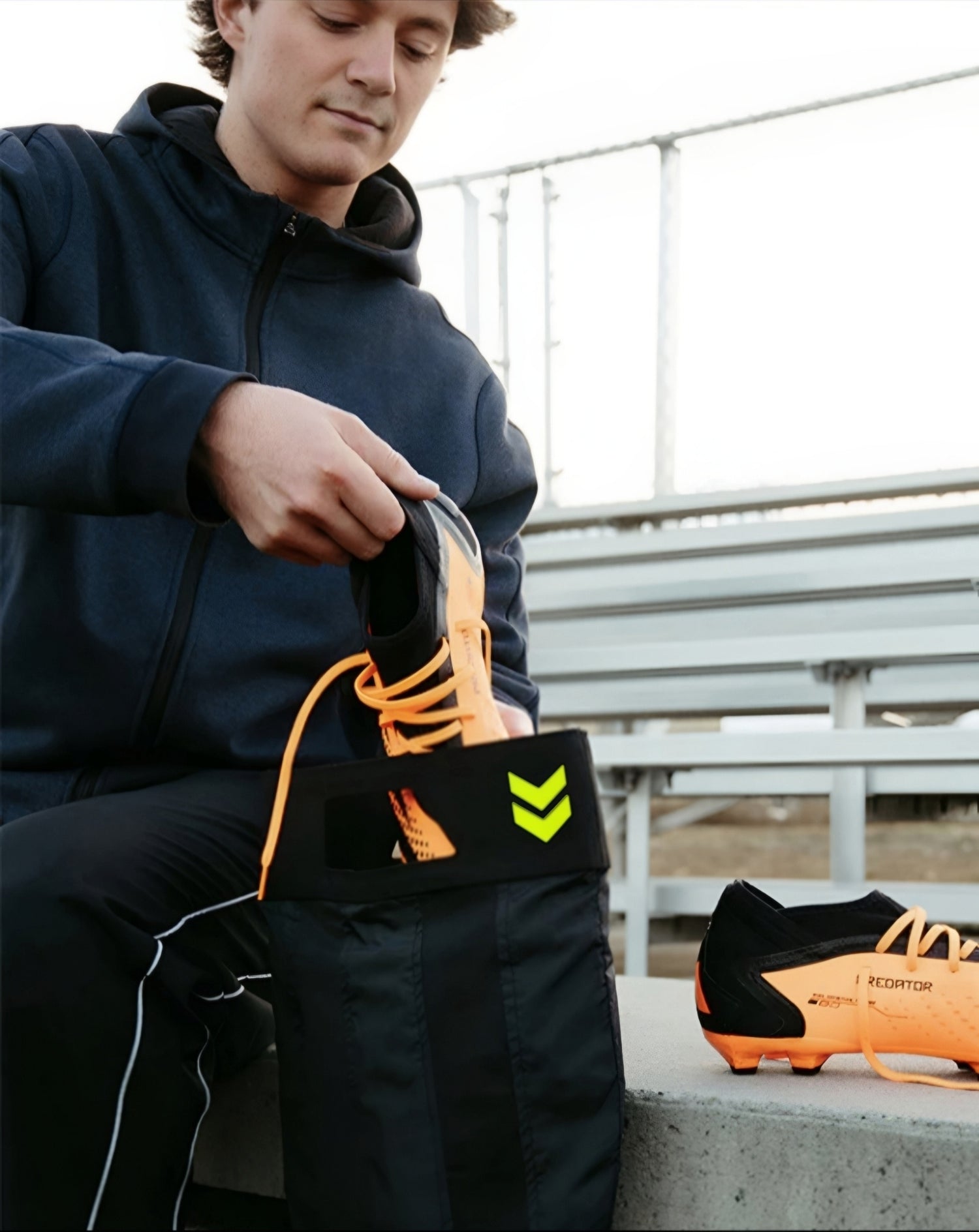 La bolsa ZenBag de tamaño normal se ajusta cómodamente a zapatillas de fútbol y otros zapatos deportivos de caña baja hasta la talla 46 de hombre (EU). Si no está seguro de que la talla normal le quede bien, le recomendamos la talla XL, que se ajusta hasta aproximadamente la talla 50 EU.